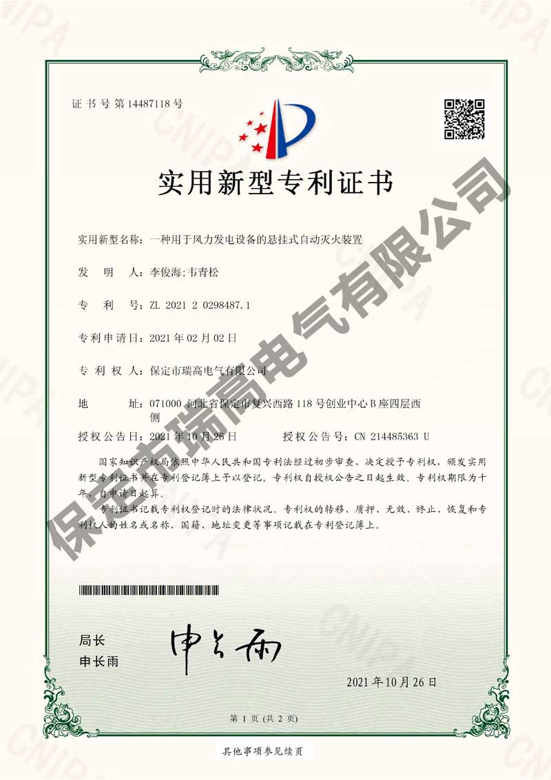 風(fēng)力發(fā)電機(jī)振動(dòng)監(jiān)測(cè)系統(tǒng)及振動(dòng)抑制方法風(fēng)力發(fā)電機(jī)振動(dòng)監(jiān)測(cè)系統(tǒng)及振動(dòng)抑制方法電流檢測(cè)系統(tǒng)電流檢測(cè)系統(tǒng)干粉滅火設(shè)備干粉滅火設(shè)備葉片狀態(tài)監(jiān)測(cè)裝置葉片狀態(tài)監(jiān)測(cè)裝置懸掛式自動(dòng)滅火裝置懸掛式自動(dòng)滅火裝置接地保護(hù)裝置接地保護(hù)裝置箱變測(cè)控裝置箱變測(cè)控裝置環(huán)境管理體系認(rèn)證證書(shū)環(huán)境管理體系認(rèn)證證書(shū)